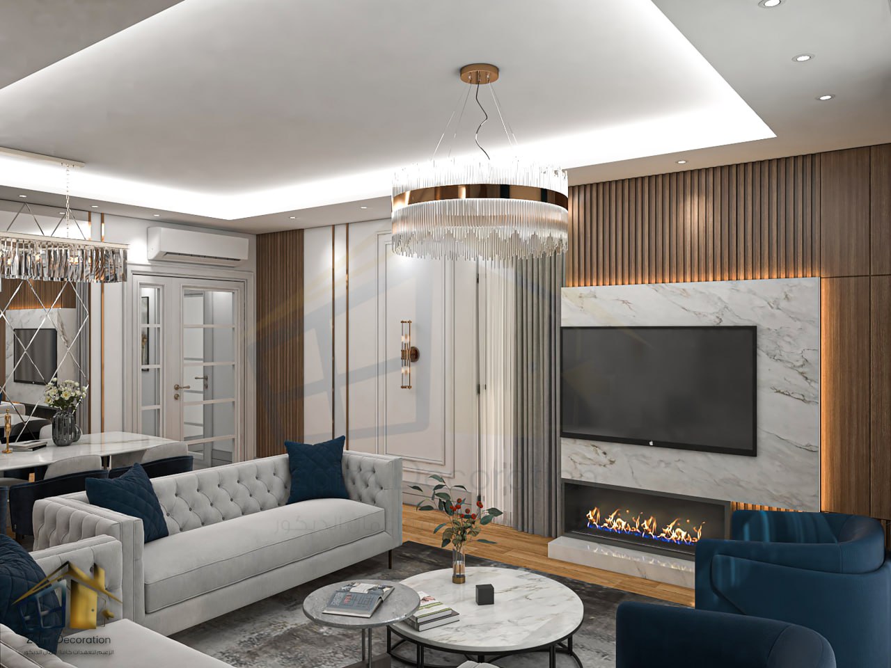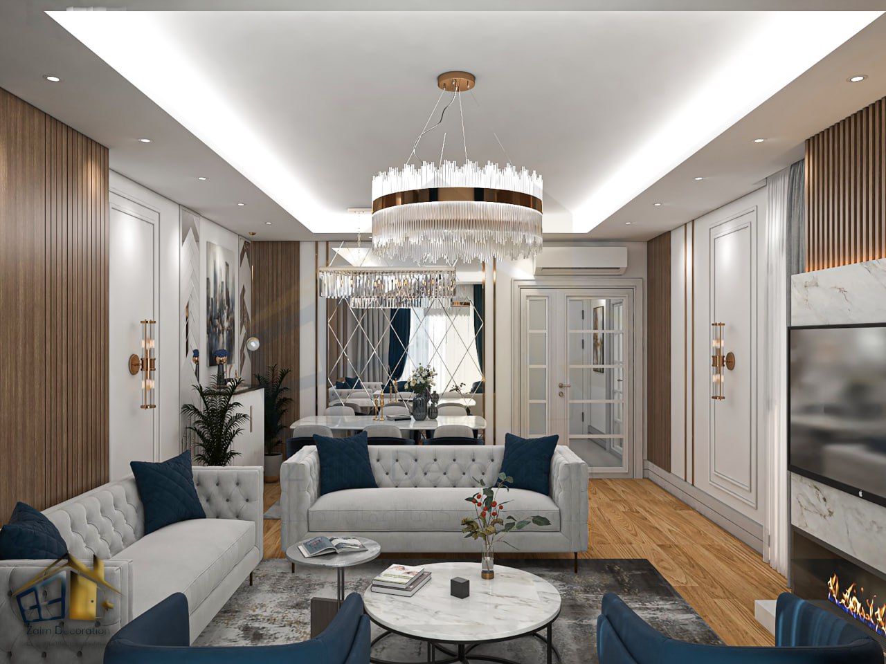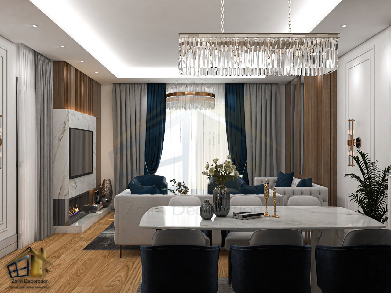 "Welcome to our 2+1 apartment, where the charm of neo-classical design meets the elegance of modern details. Every corner reveals our meticulous touches, carefully crafted to reflect refined taste and a sense of warmth and comfort. The living room, the heart of the home, is characterized by its soothing colors and golden accents, which add unparalleled luxury. Carefully selected furniture, from velvet sofas to glass-topped tables and a marble-topped dining table, creates the perfect space for relaxation and entertainment. The kitchen, with its functional design and sophisticated colors, is a masterpiece that meets daily cooking needs. Wooden cabinetry and modern appliances blend together to provide a comfortable and enjoyable experience. The two bedrooms, havens of tranquility, are characterized by their soothing colors and comfortable furniture. Dim lighting and luxurious curtains create the perfect atmosphere for relaxation and a restful sleep. The bathroom, with its elegant design and marble accents, is an oasis of tranquility. And relaxation. The large mirror and appropriate lighting make every moment a pleasant experience.